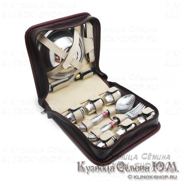 Описание Дорожный набор «Дорожный-4». Тарелки и столовые приборы на шесть человек в этом наборе подарят вам приятный и эстетичный отдых в любых условиях. Все они выполнены из стали высокого качества, поэтому прослужат очень долго. Не упустите шанс купить набор для пикника «Дорожный-4». Производится дорожный набор «Дорожный-4» в городе Ворсма в кузнице Сёмина Юрия Михайловича. Дорожный набор «Дорожный-4» укомплектован: 1. Ложки - 6 штук. 2. Стопки - 6 штук. 3. Вилки - 6 штук. 4. Тарелки - 6 штук. 5. Нож складной. 6. Зажигалка. 7. Штопор.