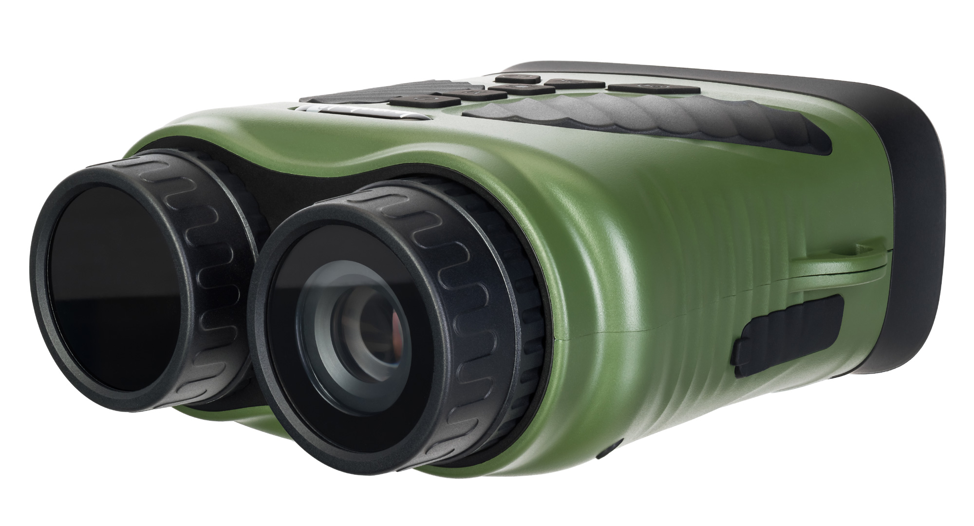 При свете дня и в сумерках дальность наблюдений ничем не ограничена, а ночью она составляет 250–300 метров. Оптические элементы бинокля выполнены из стекла, корпус – из высокопрочного ABS-пластика, который защитит высокотехнологичную «начинку» от повреждений в случае падения. Светодиодная ИК-подсветка питается от сменного аккумулятора и имеет 3 уровня яркости – подобрать оптимальный режим просмотра изображения в ночное время не составит труда. Диагональ и разрешение встроенного дисплея здесь больше, чем у модели DNB100, что позволяет изучить больше подробностей при наблюдениях.