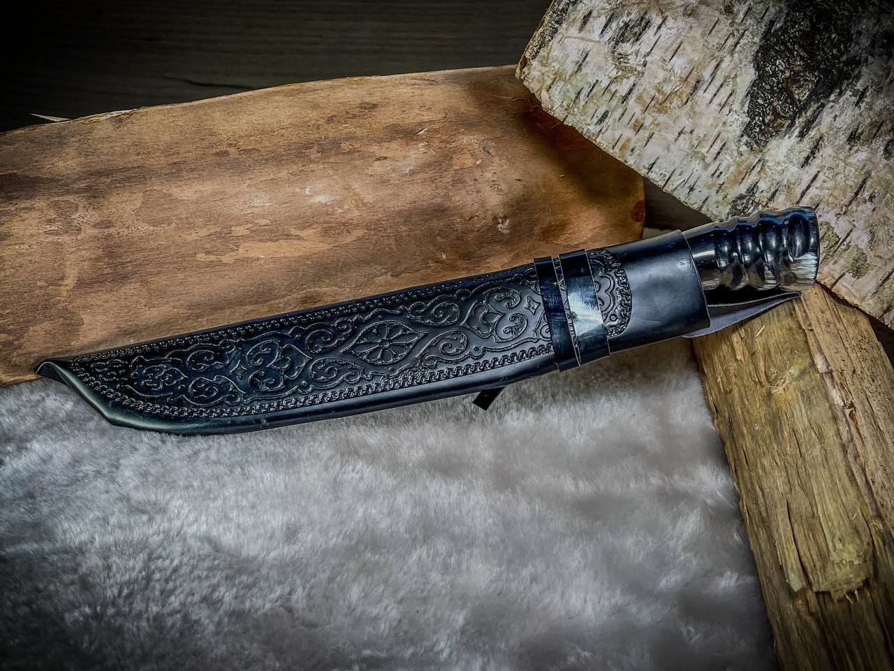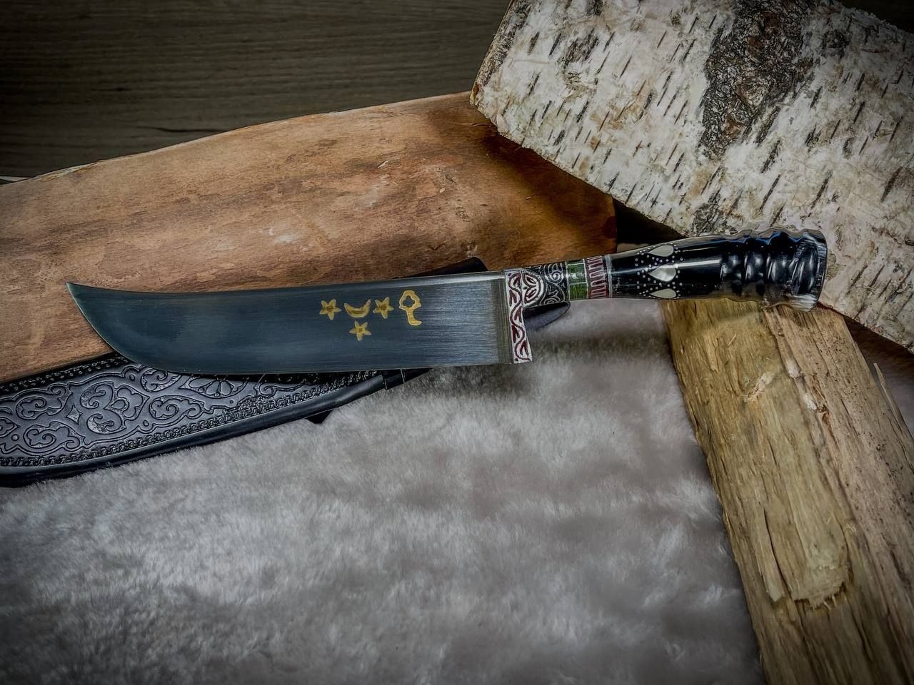 - рукоять:рог сайгака с садафом (узорные вставки из перламутра)
