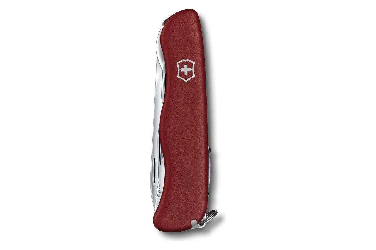 Нож VICTORINOX Picknicker 111 мм, красный 0.8353 пригодится в туристическом походе. Он имеет складную конструкцию, благодаря чему безопасен в хранении и транспортировке. Нож поддерживает 11 функций: лезвие, штопор, консервный нож, малая отвертка, открывалка для бутылок с отверткой, инструмент для снятия изоляции, шило, кернер, пинцет, зубочистка, кольцо для ключей. Для установки лезвия в определенном положении предусмотрен фиксатор.