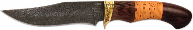АКУЛА (8601)д Нож нескладной дамаск венге береста упор худ. литьё латунь, Ножемир Россия